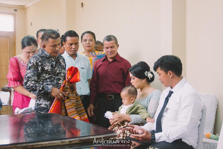 Melihat Adriell berada di pelukan kedua orang tuanya, saya merasakan kehangatan yang mendalam. Tangan-tangan mungil itu mungkin belum mengerti besarnya makna hari itu, namun sorot matanya mencerminkan kemurnian hati yang menjadi pengingat bagi kita semua tentang arti sebuah anugerah. Setiap frame berusaha menangkap kelembutan sentuhan dan senyum penuh syukur dari para saksi iman yang hadir.