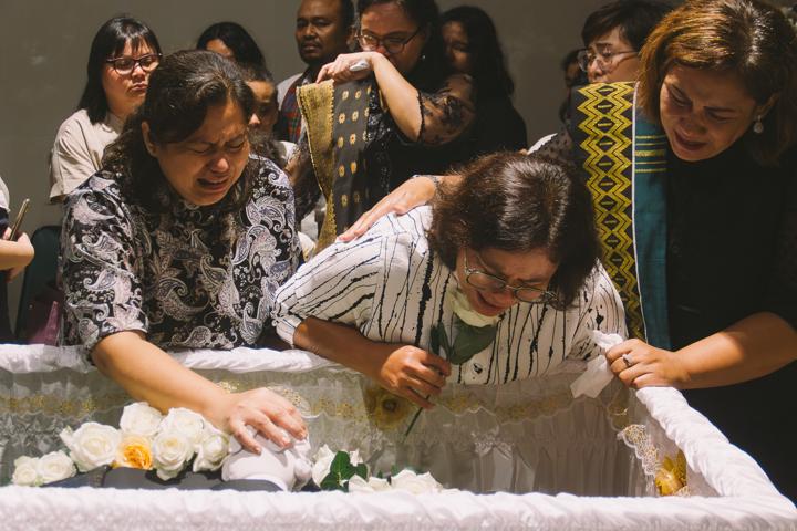 Suasana ibadah pelepasan dan pemakaman diselimuti oleh rasa hormat yang mendalam. Deretan karangan bunga yang memenuhi ruangan menjadi bukti nyata betapa berartinya sosok Jhon Erickson Ginting bagi orang-orang di sekitarnya. Sebagai fotografer, saya berusaha untuk hadir setenang mungkin, membingkai setiap air mata dan pelukan penguatan tanpa mengusik kekhidmatan suasana. Ada keindahan yang menyakitkan dalam cara keluarga saling menggenggam tangan, menunjukkan bahwa cinta tidak akan terputus oleh jarak antara dunia yang berbeda.