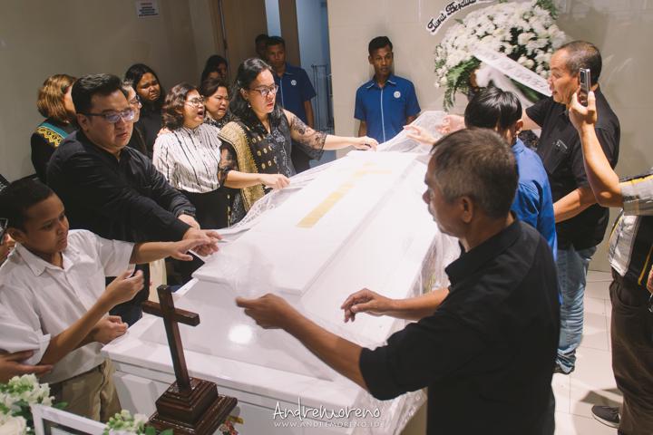 Saat peti putih perlahan diturunkan ke peristirahatan terakhirnya di bawah langit yang redup, doa-doa terakhir melambung tinggi. Tugas saya adalah memastikan bahwa momen-momen penghormatan terakhir ini tetap abadi, menjadi pengingat bagi mereka yang ditinggalkan tentang betapa besar kasih yang pernah ada. Terima kasih kepada keluarga yang telah mempercayakan saya untuk berada di sisi kalian dalam waktu yang sangat pribadi ini. Semoga kedamaian abadi menyertai almarhum dan kekuatan senantiasa menyertai keluarga yang ditinggalkan.