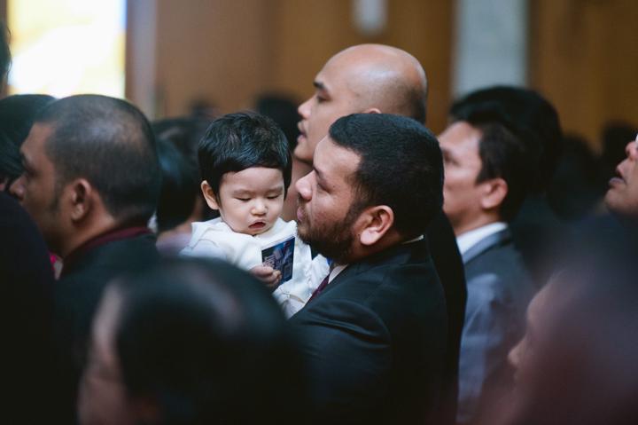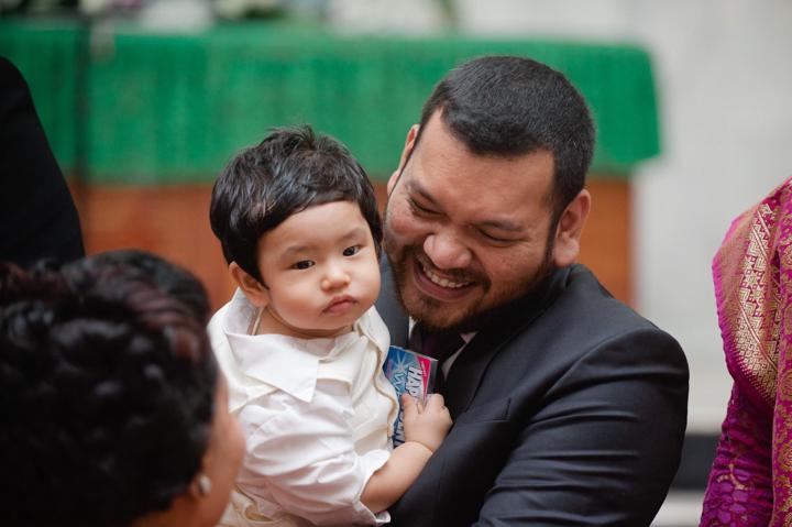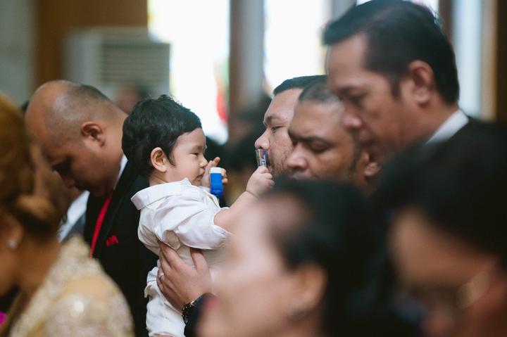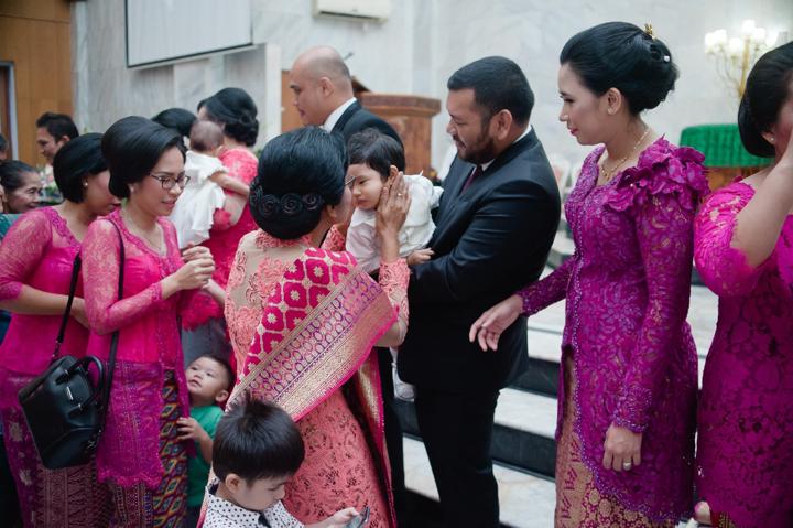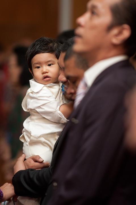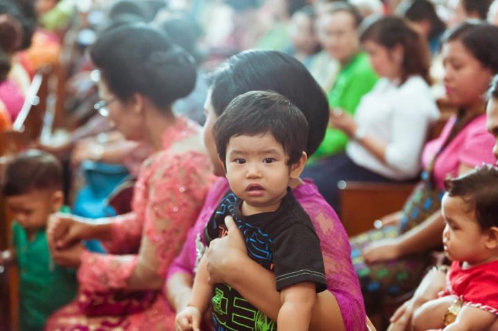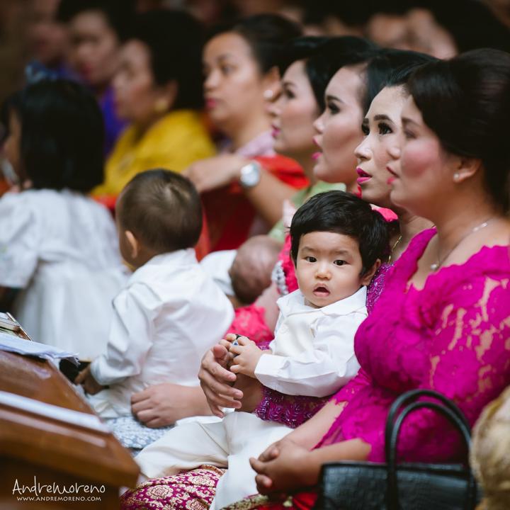 Joaquin, dalam setelan putihnya yang bersih, tampak begitu tenang saat prosesi berlangsung. Tatapan penuh kasih dari ayah dan ibunya, serta dukungan dari keluarga besar yang hadir, menciptakan atmosfir yang sarat akan makna spiritual. Sebagai fotografer, saya selalu tergerak oleh kemurnian ekspresi seorang bayi saat diperkenalkan kepada komunitas imannya. Setiap frame bukan hanya tentang menangkap upacara ceremonial, melainkan tentang mengabadikan janji keluarga untuk membimbing Joaquin dalam jalan kebenaran dan kasih.