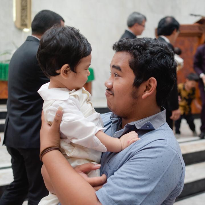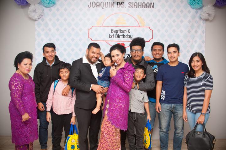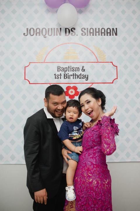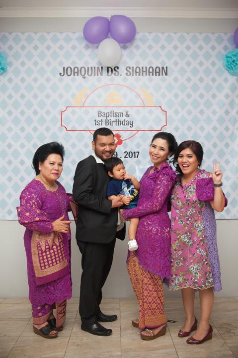 September 2017 membawa kegembiraan yang meluap bagi keluarga saat Joaquin kecil menerima sakramen baptisan kudus yang bertepatan dengan momen hari ulang tahunnya di HKBP Rawamangun. Di bawah naungan gereja yang megah, suasana hari itu terasa begitu hangat dan intim. Balutan busana nuansa ungu dan magenta yang dikenakan oleh kedua orang tuanya memberikan sentuhan warna yang ceria sekaligus elegan, mencerminkan sukacita yang meluap atas anugerah kehidupan yang mereka terima melalui kehadiran Joaquin.
