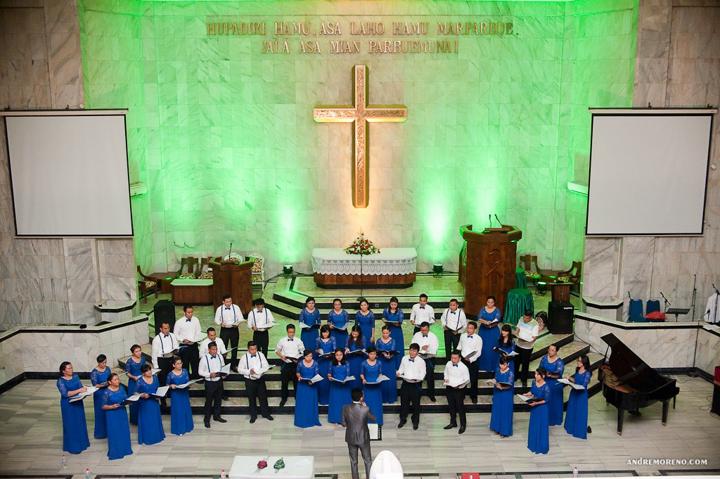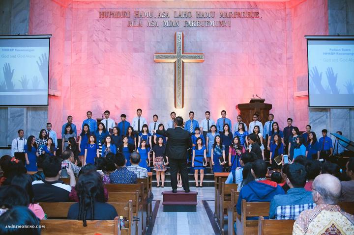 Oktober 2014 menjadi saksi dari semangat luar biasa Paduan Suara Gabungan HKBP Rawamangun saat mereka menggelar Konser Mini sebagai persiapan menuju Kompetisi Pesparawi 2014. Panggung di area depan altar berubah menjadi lautan biru yang anggun, tempat di mana puluhan suara bersatu dalam harmoni yang memikat. Sebagai fotografer, saya tidak hanya menangkap barisan penyanyi, tetapi juga gairah yang terpancar dari wajah setiap anggota choir saat mereka mencapai nada-nada tinggi yang bertenaga.