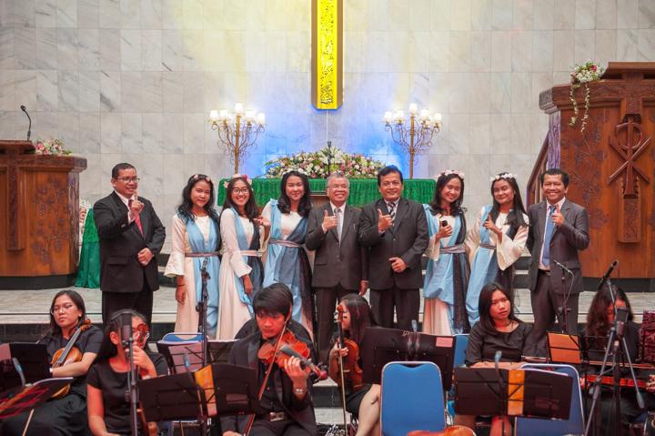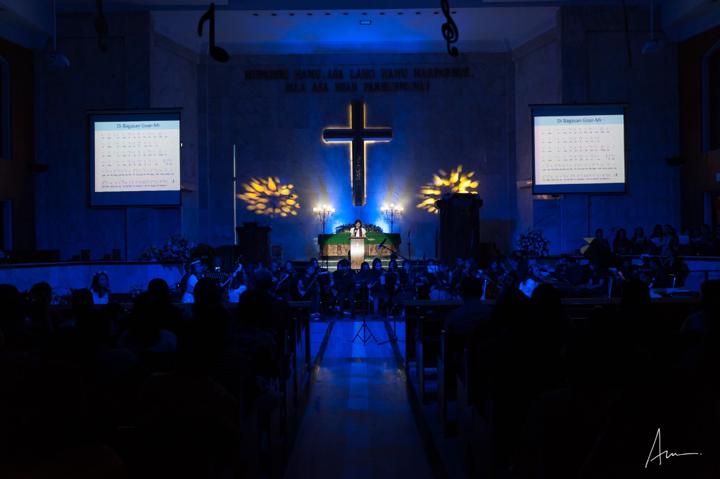 September 2018 menjadi puncak perayaan Bulan Musik di HKBP Rawamangun yang sangat membekas di ingatan. Gereja bertransformasi menjadi sebuah aula konser yang penuh dengan energi artistik. Sorotan utama malam itu tertuju pada penampilan orkestra yang luar biasa. Salah satu frame favorit saya adalah potret seorang pemain biola yang sedang menghayati melodi dengan latar belakang cahaya remang, menciptakan siluet yang dramatis sekaligus syahdu. Gesekan dawai yang merdu mengisi setiap sudut ruangan, membawa jemaat dalam kontemplasi musikal yang mendalam.