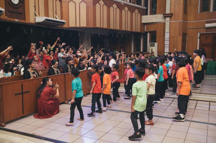 Keindahan acara ini bukan hanya terletak pada musisi profesionalnya, tetapi juga pada partisipasi aktif generasi masa depan. Saya sangat terkesan melihat anak-anak yang tampil dengan kaos warna-warni, menari dan bergerak mengikuti irama dengan penuh semangat di hadapan para orang tua yang bangga merekam momen tersebut. Kontras antara kemegahan simfoni orkestra dan kepolosan gerak anak-anak menciptakan sebuah harmoni persembahan yang sangat unik dan menyentuh hati.
