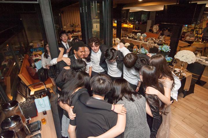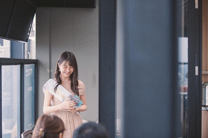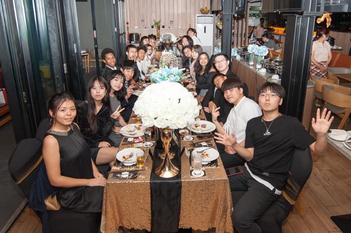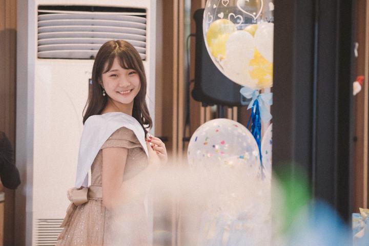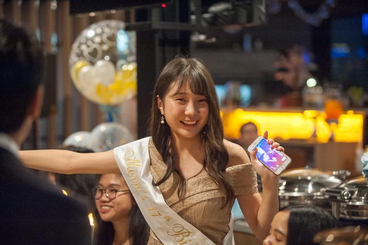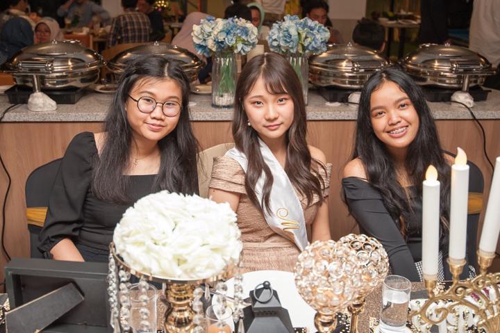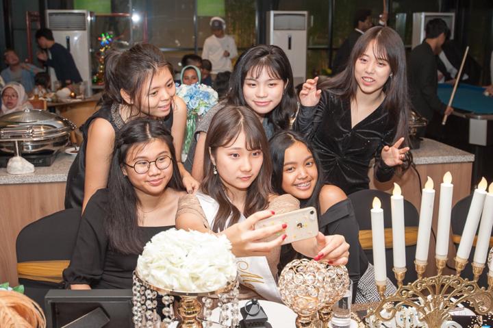 Suasana pesta berlangsung sangat meriah dan akrab. Saya berusaha menangkap setiap detail dekorasi, mulai dari balon-balon transparan berisi manik-manik warna-warni hingga meja perjamuan yang tertata rapi dengan sentuhan emas yang mewah. Namun, esensi utama dari dokumentasi ini adalah kebersamaan para tamu yang hadir. Melihat Momo dikelilingi oleh sahabat-sahabat sebayanya yang memenuhi meja panjang dengan canda tawa memberikan energi positif yang sangat kuat di sepanjang acara. Ekspresi bahagia saat mereka berpose bersama adalah potret murni dari persahabatan masa muda yang indah.