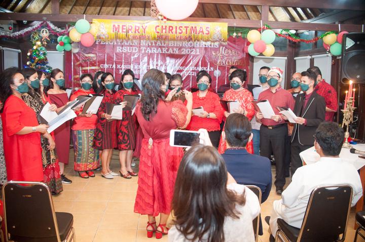 Di tengah rutinitas pengabdian yang padat, para tenaga kesehatan dan staf RSUD Tarakan yang tergabung dalam Binrohkris berkumpul untuk merayakan Natal pada Desember 2021. Dengan tema “Cinta Kasih Kristus yang Menggerakkan Persaudaraan” yang diambil dari 1 Petrus 1:22, acara ini menjadi oase spiritual yang menyejukkan. Suasana hangat begitu terasa sejak awal acara, di mana warna merah yang melambangkan keberanian dan suka cita mendominasi busana para hadirin. Meskipun masih dalam suasana kewaspadaan kesehatan, semangat untuk berbagi kebahagiaan tidak sedikit pun luntur.