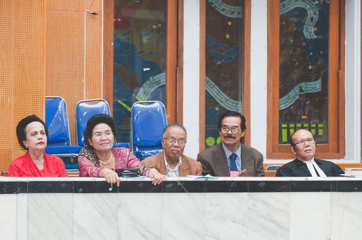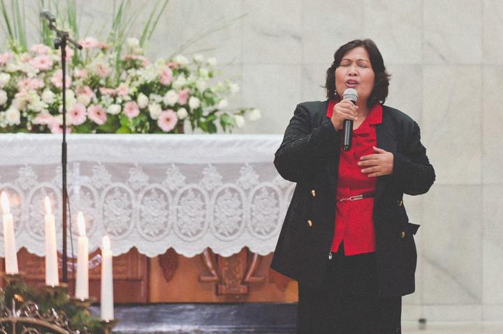 Salah satu fragmen visual yang paling kuat dari malam itu adalah deretan lilin yang menyala di tengah kegelapan, melambangkan kehadiran Sang Terang Dunia yang membawa damai. Cahaya keemasan dari api lilin menciptakan atmosfer yang tenang dan reflektif, memberikan ruang bagi setiap orang untuk merenungkan makna penebusan. Di panggung utama, kelompok koor kaum ibu tampil mempesona dengan balutan kebaya warna-warni yang senada, melantunkan pujian dengan penuh semangat dan ketulusan. Saya sengaja menangkap beberapa potret dalam nuansa hitam-putih untuk menonjolkan fokus pada ekspresi kerinduan dan sukacita saat mereka bernyanyi.