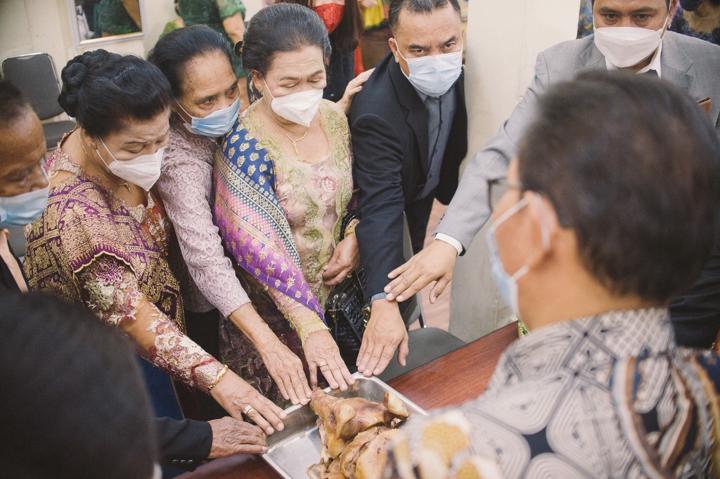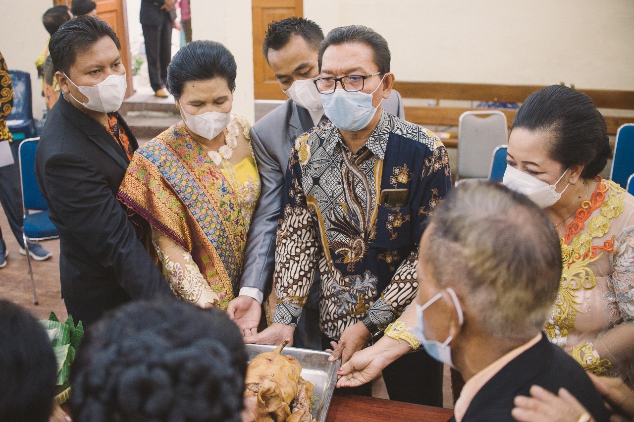 Sebagai fotografer, saya melihat sebuah keunikan tersendiri dalam bingkai-bingkai foto kali ini. Masker yang dikenakan oleh pasangan dan seluruh anggota keluarga menjadi simbol dari sebuah masa, namun binar kebahagiaan di mata mereka tetap terpancar dengan jelas. Saya mengabadikan momen simbolis saat kedua mempelai menunjukkan cincin mereka; sebuah pernyataan visual tentang kesiapan untuk melangkah ke jenjang yang lebih tinggi. Prosesi tradisional seperti pembagian jambar dan doa bersama para tetua adat terekam sebagai pengingat bahwa meskipun dunia sedang berubah, nilai-nilai luhur dan dukungan komunitas akan selalu menjadi pilar yang menguatkan sebuah ikatan.